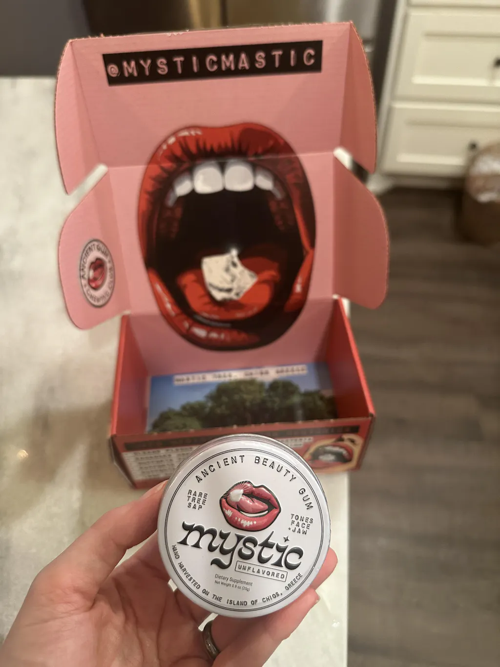 Pure mastic gum, a centuries-old Mediterranean secret for fresher breath, a sculpted jawline, and enhanced oral health.